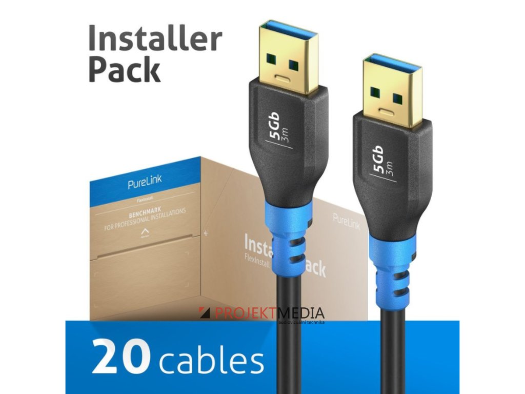FI-U310 ultraflexibilní a odolný USB-A/USB-A kabel pro profesionální AV/IT instalace. Nabízí rychlý přenos dat (5 Gb/s), napájení 15 W, grafenové stínění a kompaktní konektory pro použití ve stísněných prostorech. Výrobce: Purelink, model: FI-U310-030-PCK