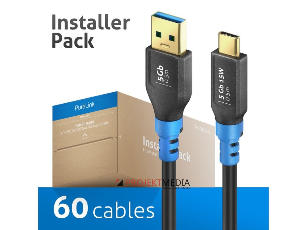 FI-U320 USB kabel PureLink FlexInstall – USB 3.2 Gen1, ultraflexibilní a odolný USB kabel s přenosem dat až 5 Gb/s a napájením 15 W. Vhodný pro profesionální AV/IT instalace ve stísněných prostorech. S grafenovým stíněním a kompaktními konektory. Výrobce: Purelink, model: FI-U320-005-PCK