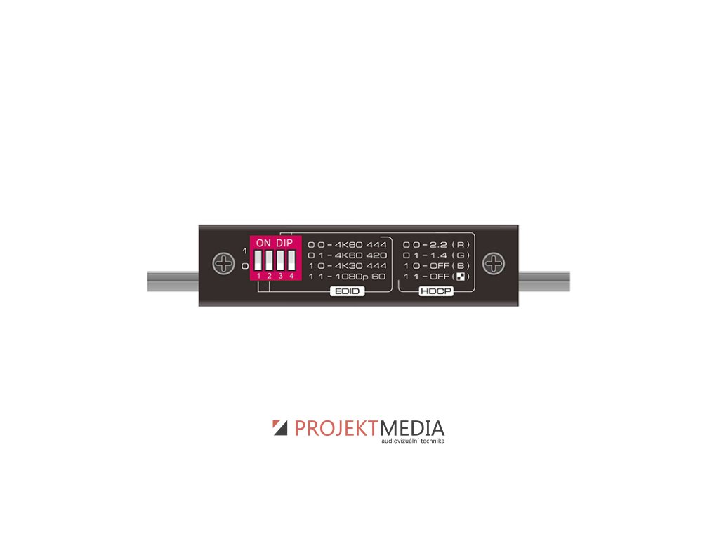 Konfigurace výstupního signálu je možná pomocí 4 DIP přepínačů (displej EDID / HDCP)