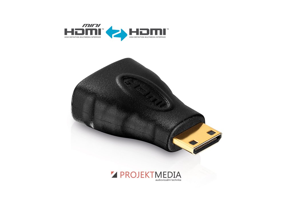Adaptér převádí signály HDMI-A (samec) na Mini HDMI-C (samice) a tím rozšiřuje kompatibilitu o obrazovky se vstupem Mini HDMI.