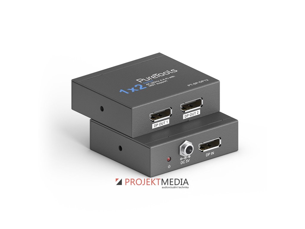 PureLink PT-SP-DP12 1x2 4K 21.6Gb/s DisplayPort rozbočovač, 4K 60Hz (4:4:4) a funkce MST, DisplayPort 1.2a s 21.6Gb/s, výrobce: PureLink, model: PT-SP-DP12