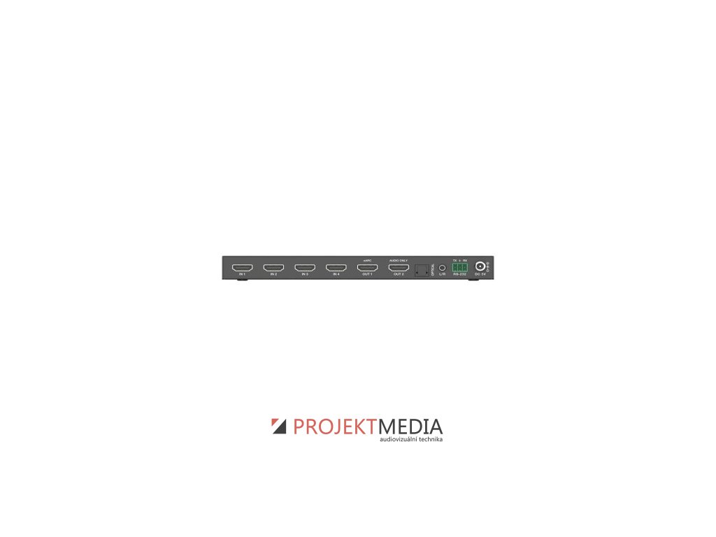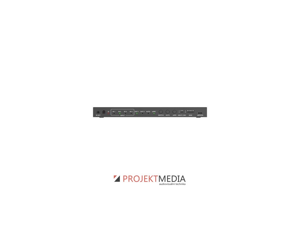 Kompletní řada audio výstupů včetně podpory eARC, HDMI Audio Only 7.1, Digital SPDIF 5.1 a de-embedding 2-kanálového audio přes 3,5mm jack.