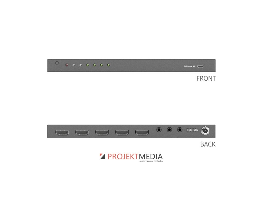 DIP přepínač pro režim EDID, RS232 a IR řízení, stereo audio de-embedding