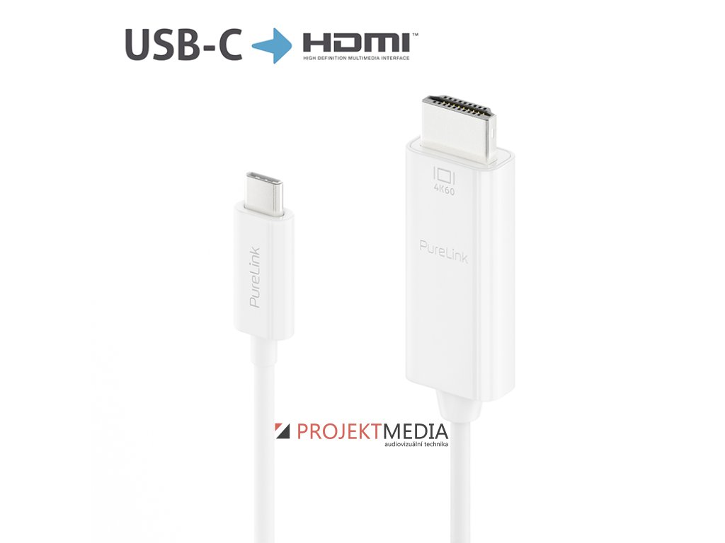 PureLink IS2200 je jednosměrný kabel USB-C na HDMI v bílé barvě, přenos dat až 18 Gb/s v rozlišení až do 4K UltraHD 60 Hz. výrobce: PureLink, model: IS2200
