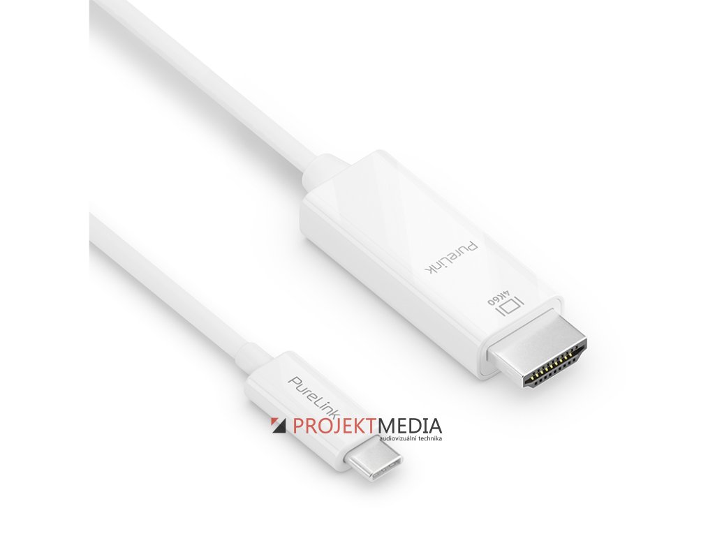 PureLink IS2200 je jednosměrný kabel USB-C na HDMI v bílé barvě, přenos dat až 18 Gb/s v rozlišení až do 4K UltraHD 60 Hz. výrobce: PureLink, model: IS2200