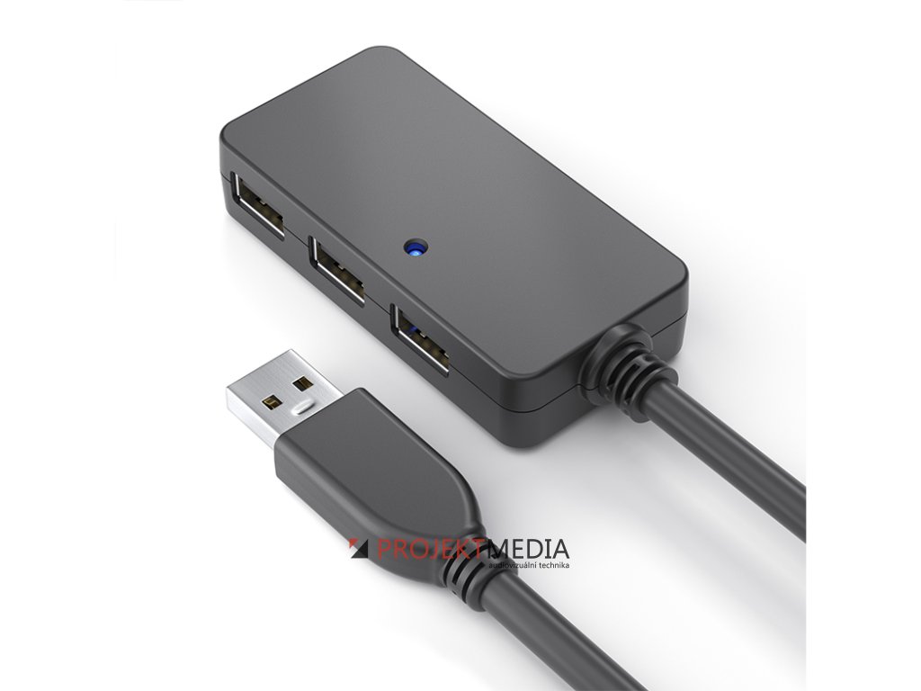SuperSpeed USB 3.2 (Gen. 1x1) USB hub včetně aktivního prodlužovacího kabelu je nepostradatelný doplněk pro uživatele PC a Mac pro připojení USB periferií jako je pevný disk, tiskárna, myš, klávesnice a USB huby. USB hub je napájen a obsahuje integrovanou zesilovací čipovou sadu pro zajištění výkonu SuperSpeed USB 3.1 (Gen. 1) na delší vzdálenosti než pasivní USB prodloužení. Kombinace poniklovaných konektorů, měděných vodičů a také stínění z fólie poskytuje vynikající výkon kabelu a bezchybný přenos dat. Napájecí zdroj 5V / 3.5A je součástí balení.