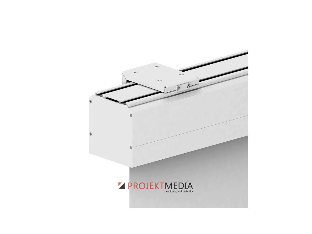 - Standardně připraveno pro přímou montáž na strop nebo na stěnu. Montážní drážky po celé délce tubusu umožňují mnoho dalších způsobů uchycení promítacího plátna