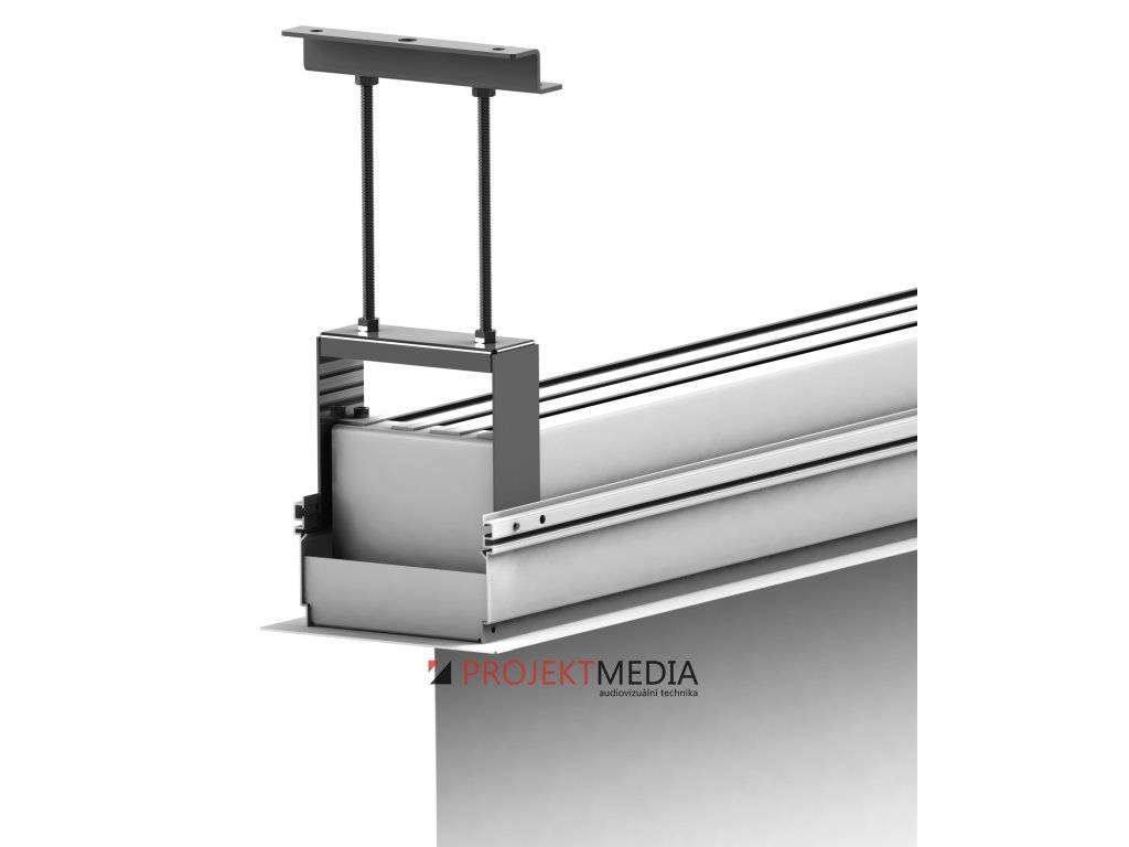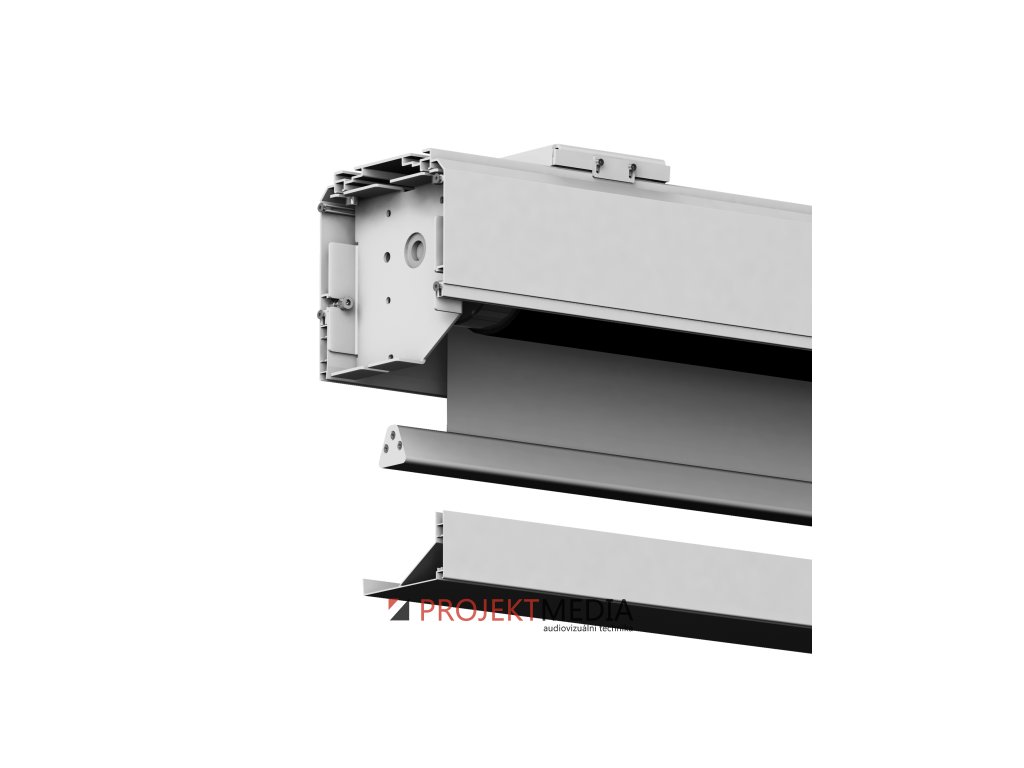 Velkoformátové podhledové motorové promítací plátno v segmentovém hliníkovém tubusu pro semináře, veletrhy, kongresové sály, divadla a kina a pod.