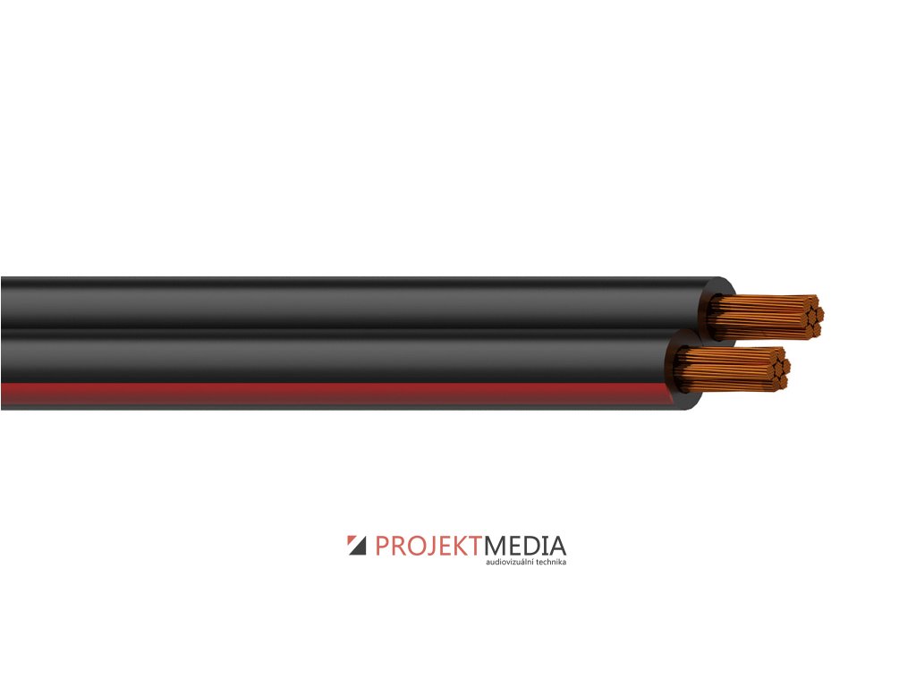 Profesionální reproduktorový kabel plochý - dvojlinka, průřez 2 x 1,5 mm² / 16 AWG, vysoce flexibilní laněné vodiče z bezkyslíkaté mědi se 140 vlákny o průměru 0,12mm v každém vodiči. Stejnosměrný odpor 1,2 Ohmu / 100m, kapacita vodič/vodič 95pF / 1m @ 1kHz, přeslech >74dB / 100m. Vnější plášť PVC 3x6mm, barva černá s rozlišením polarity. Návin 100m.