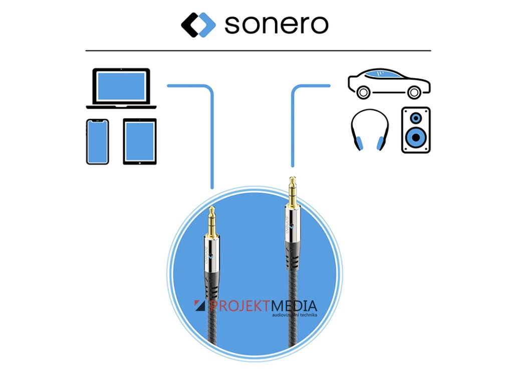 Sonero S-AC505 je 3.5mm jack stereo audio kabel s rovnými konektory a nylonovým povrchem, výrobce: Sonero, model: S-AC505