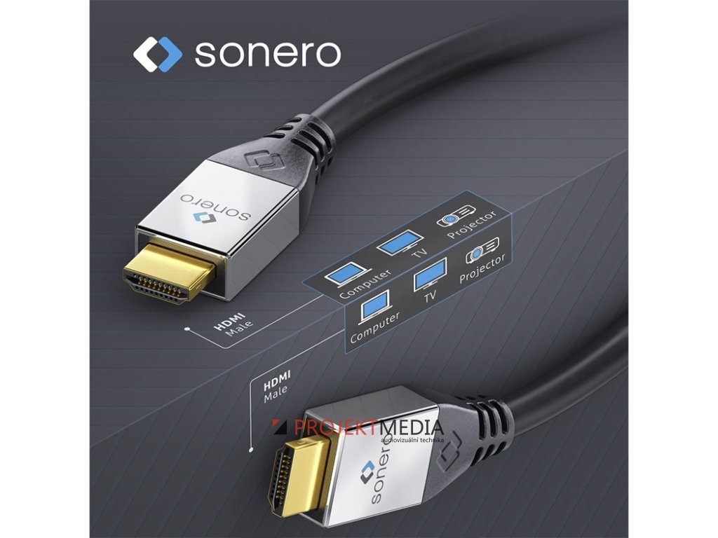 Sonero S-HC000 je HDMI-A na HDMI-A kabel, UltraHD / 4K / 60Hz s 18Gb/s pro HDMI 2.0, výrobce: Sonero, model: S-HC000