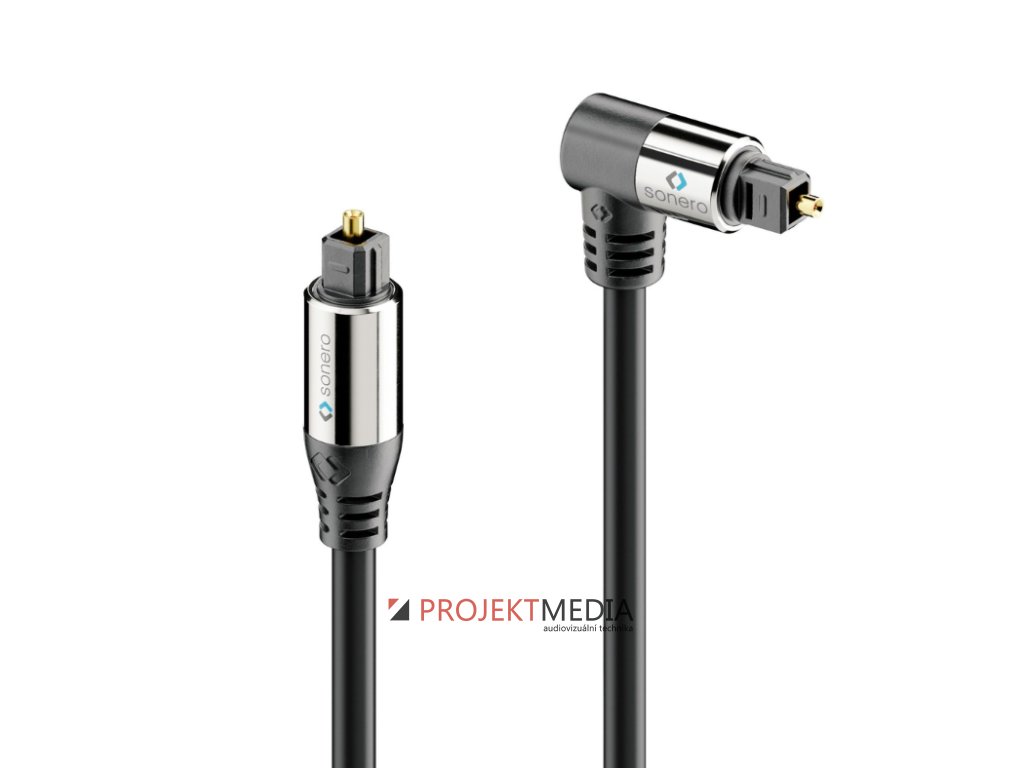 S-OC110-150 prémiový optický audio kabel Toslink s přímým a 90° úhlovým konektorem pro spolehlivý přenos digitálního S/PDIF signálu. Vhodný pro propojení TV, soundbarů, herních konzolí a AV receiverů. Délka: 15 m, výrobce: Sonero, model: S-OC110-150