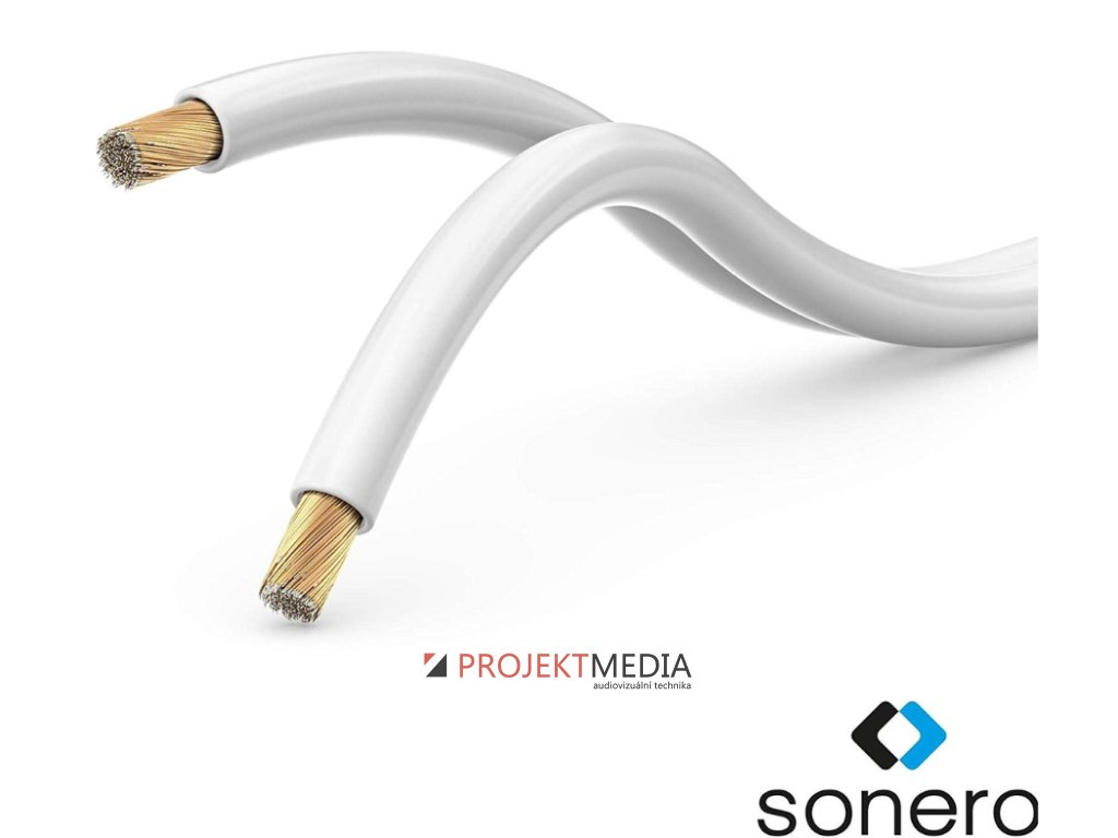 Sonero Premium 2×2,50 mm² reproduktorový kabel s volnými konciReproduktorový kabel Sonero Premium s průřezem 2,50 mm² je ideálním řešením pro připojení reproduktorů a zesilovačů v různých audio aplikacích. Je vyroben z CCA vodiče (měděný plátovaný hliník), který nabízí výborný poměr ceny a výkonu. Bílý plášť s černým pruhem na jedné straně zajišťuje snadné rozlišení polarity, což výrazně usnadňuje instalaci. Díky své vysoké flexibilitě a tenkému plášti je kabel vhodný i pro instalace v úzkých a obtížně přístupných místech. Volné konce lze jednoduše zakončit např. banánkovými konektory. Využití najde v domácím kině, Hi-Fi sestavách, ozvučení vozidel nebo při profesionálním ozvučení prostor.