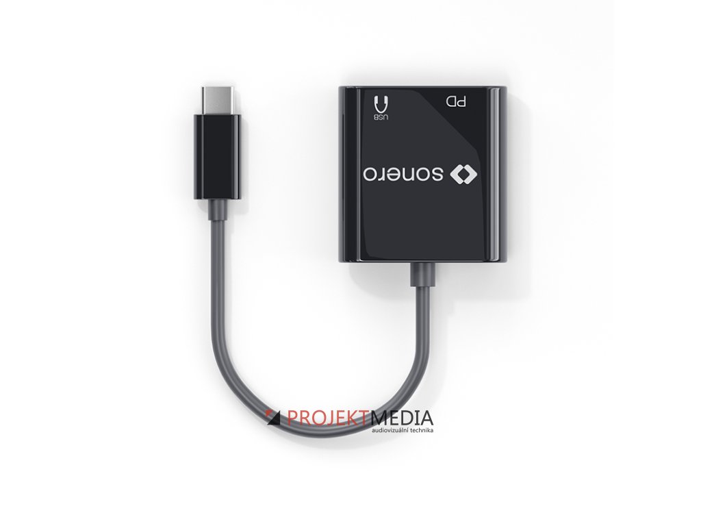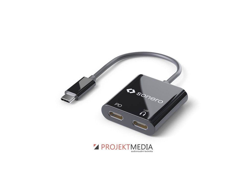 Sonero X-UA210 je USB-C / CF (Audio) a CF (PD) převodník, USB-C (samec) / 2x USB-C (samice) PD + Audio I/O adaptér - černý, výrobce: Sonero, model: X-UA210