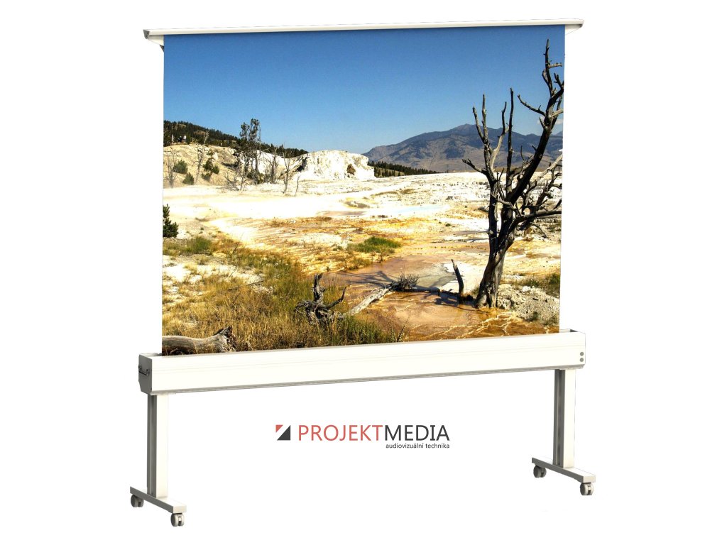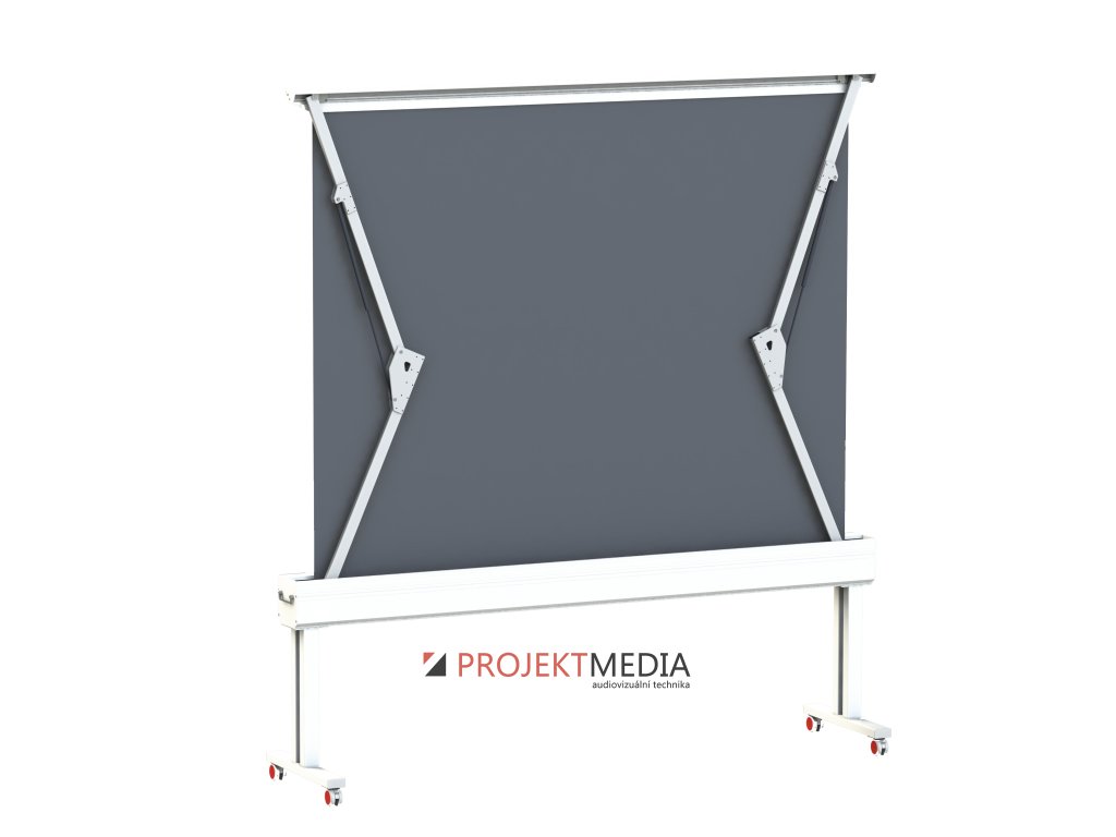 Motorové promítací plátno v segmentovém hliníkovém tubusu s obráceným výsuvem a podvozkem šíře 400cm.