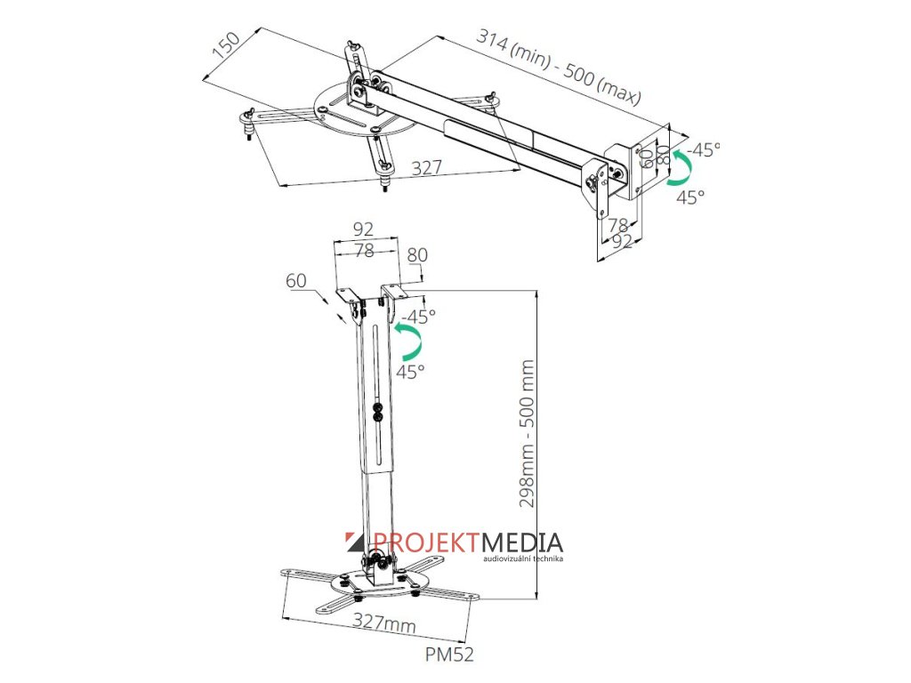 *Použití: projektor *Typ držáku: na strop/na zeď *Maximální hmotnost: 10 kg *Materiál: kov *Barva: stříbrná