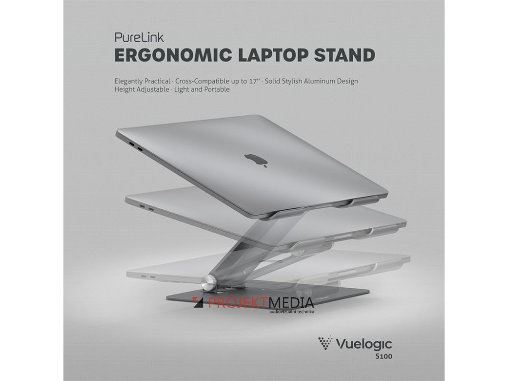 Vuelogic VL-S100 nastavitelný stojan na notebook, pro notebooky od 10" do 17", výška nastavitelná až na 173 mm, nosnost 3 kg, výrobce: Vuelogic, model: VL-S100