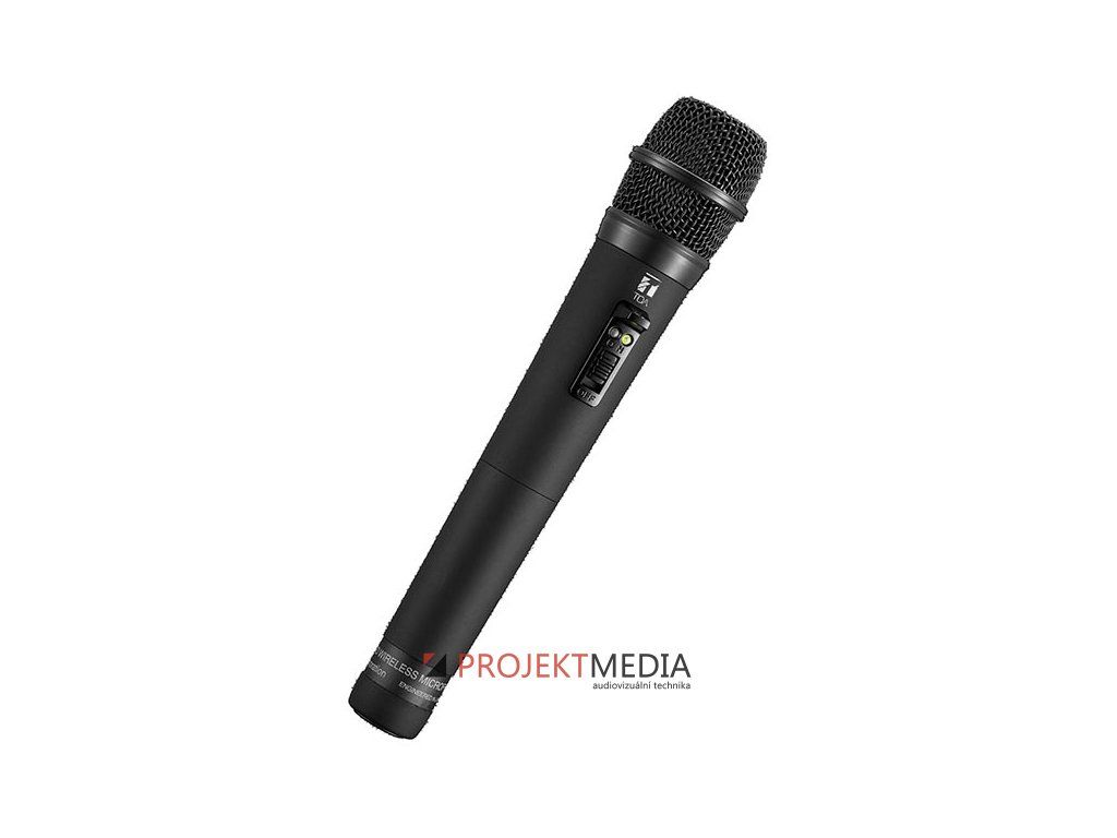 Ruční bezdrátový dynamický mikrofon, směrový, 64 volitelných kanálů v pásmu 606-636MHz, vypínač, 2x LED